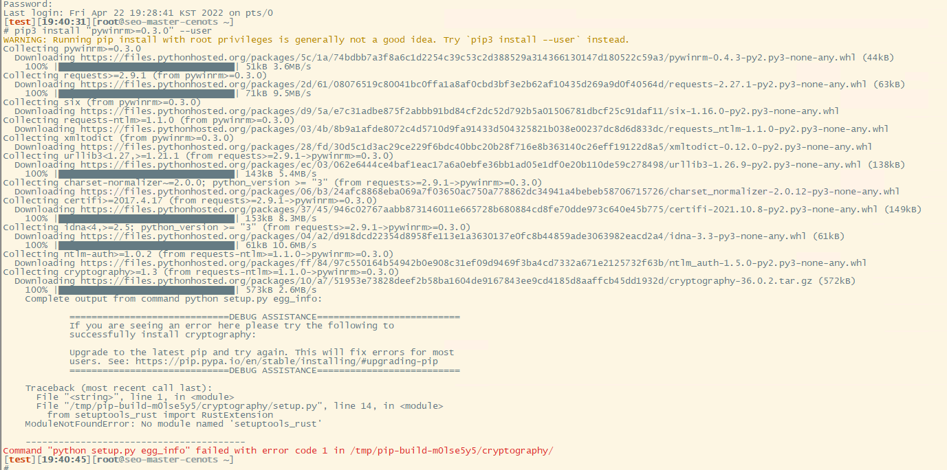 pip3 install "pywinrm>=0.3.0" --user 명령어 수행시 설치 과정중에 아래와 같은 에러가 발생하였다.